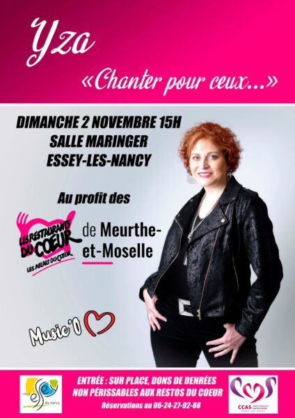 Venez nombreux au spectacle d’Yza « Chanter pour ceux » au profit des Restos du Cœur de Meurthe-et-Moselle